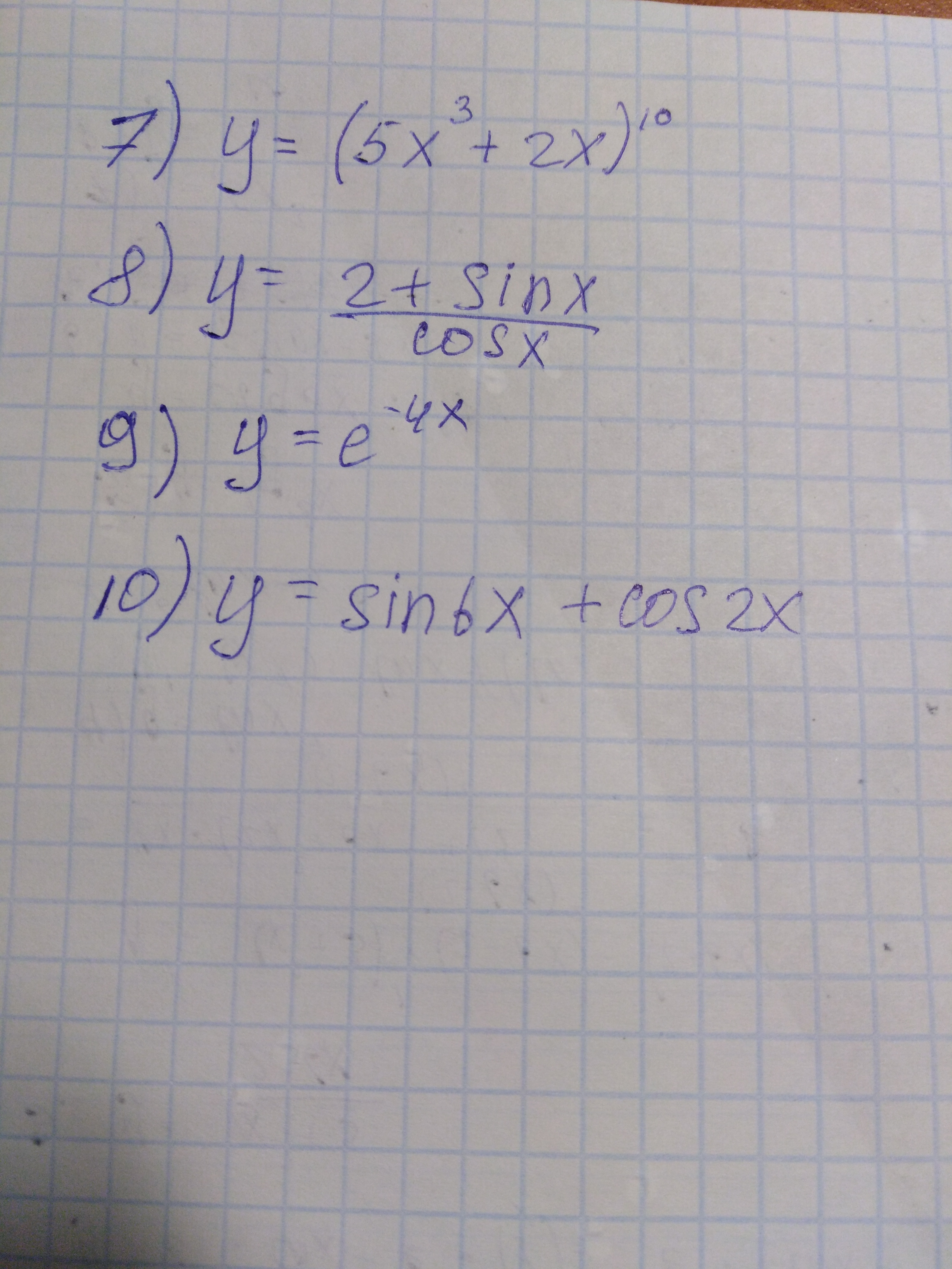 10) y'=cos6x×(6x)' -sin2x×(2x)=6cos6x-2sin2x