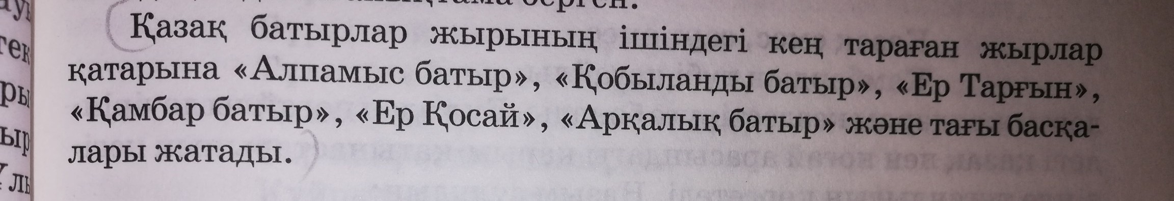 В число казахских Батырова которые вложили вклад это :Алпамыс батыр,Кобланды батыр,Ер Таргын,Камбар батыр,Ер Косай ,Аркалык батыр и еще другие батыры