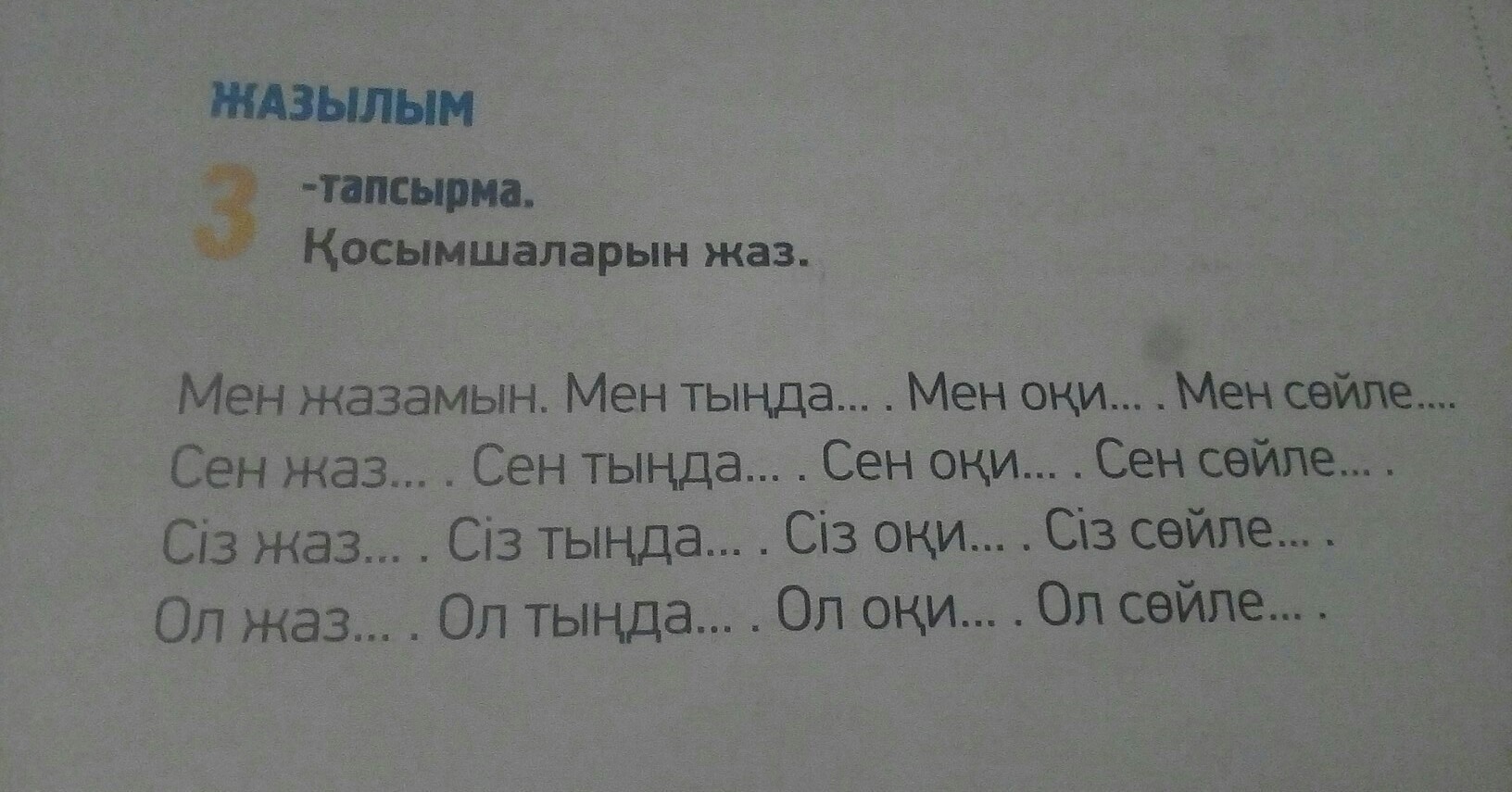 3)Сіз жазасыз. Сіз тыңдайсыз.Сіз оқисыз. Сіз сөйлейсіз.