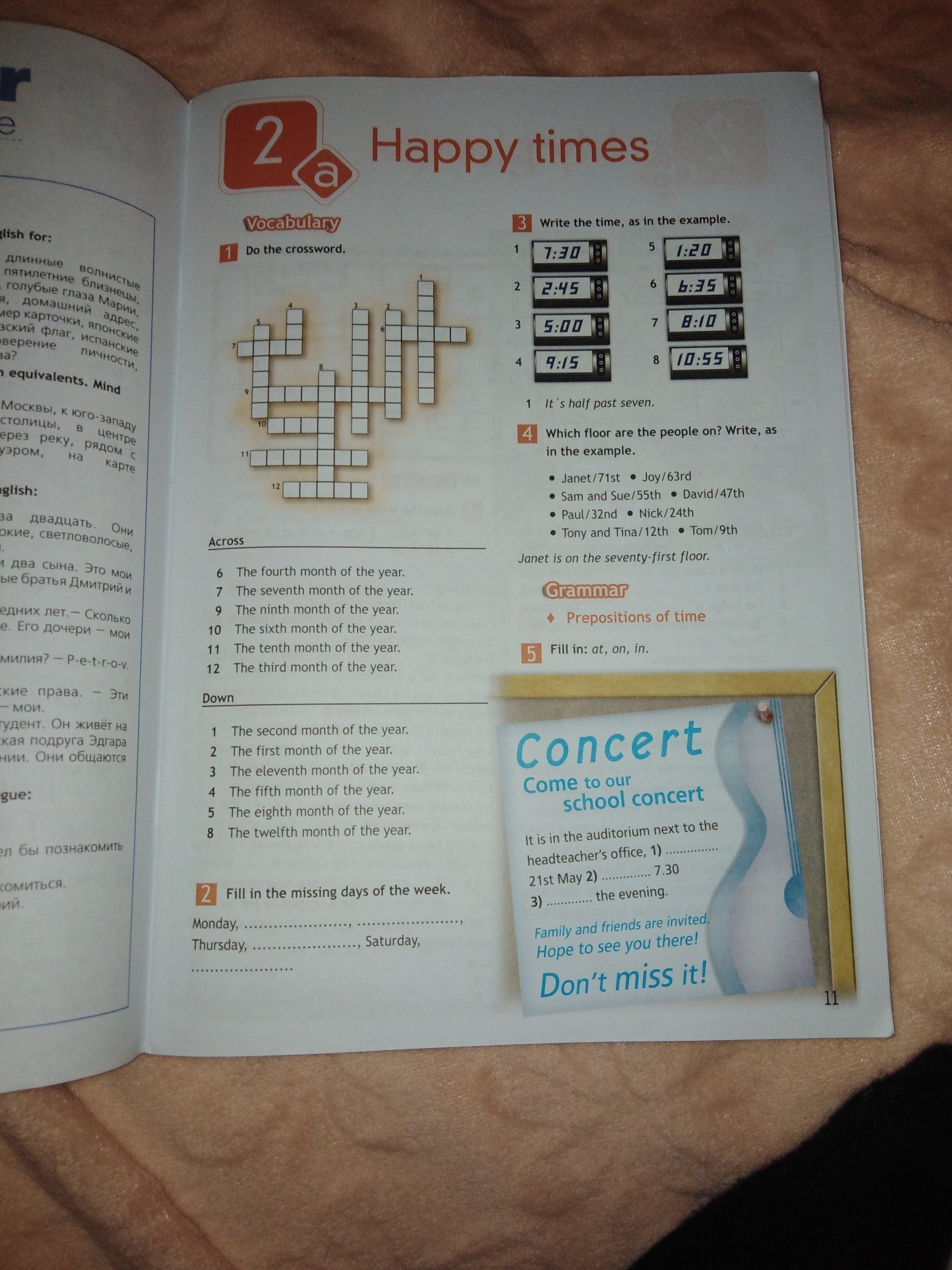 задание 2: Monday, Tuesday, Wendsday, Thursday, Freday, Saturday, Sunday