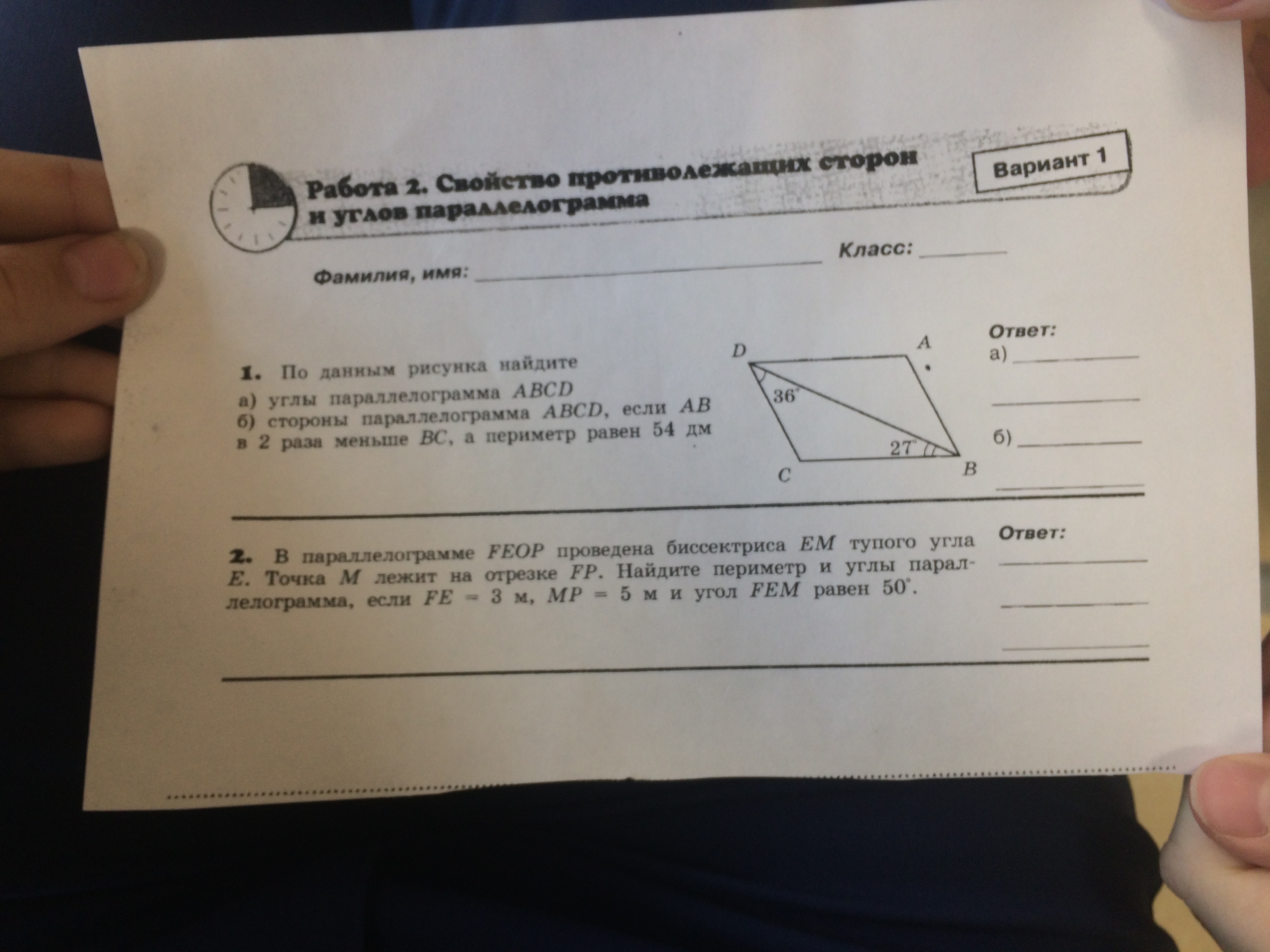 1.а)угол cbd и угол bda равны, как накрестлежащие при параллельных прямых cb и ad и секущей bd, тогда угол D будет равен 36+27=63