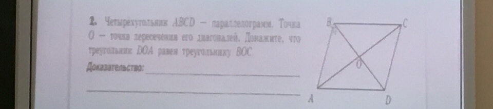 2)по свойству параллелограмма точка пересечения делит диагонали пополам значит bo=od и ao=oc