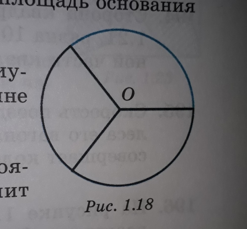 На рисунке 1.18 изображена окружность с радиусом 15 мм, разделенная на три равные по длине дуги. Найдите длину закрашенной дуги.