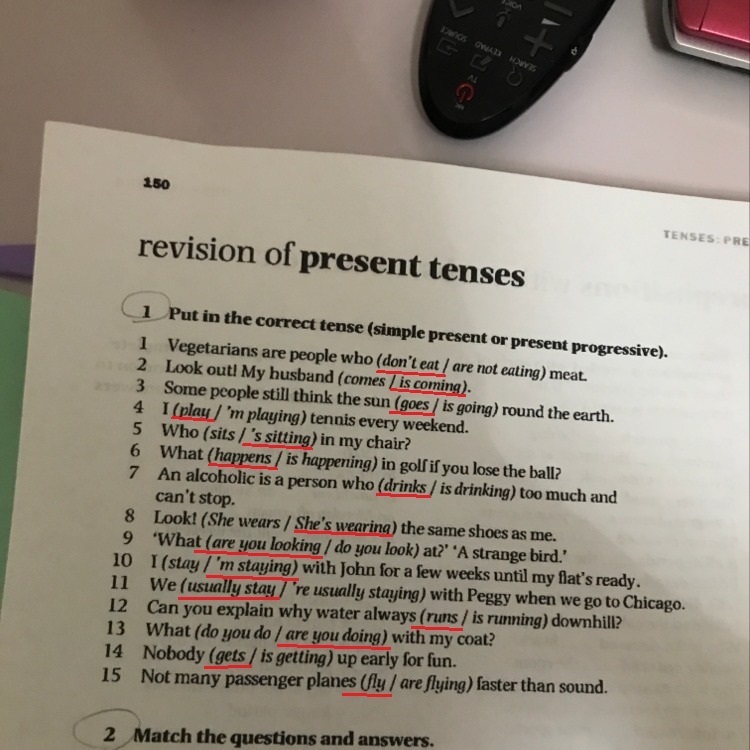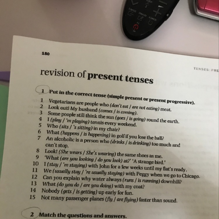 10) stay (Здесь Present Simple, т.к. Present Progressive употребляется, когда действие в данный момент происходит и прямо сейчас, например "Look! This guy is catching up on the bar now!" "Смотри! Этот парень подтягивается на турнике сейчас!")