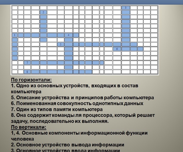 1 процессор 5. архитектура 6. база 7. операционная 8. программа