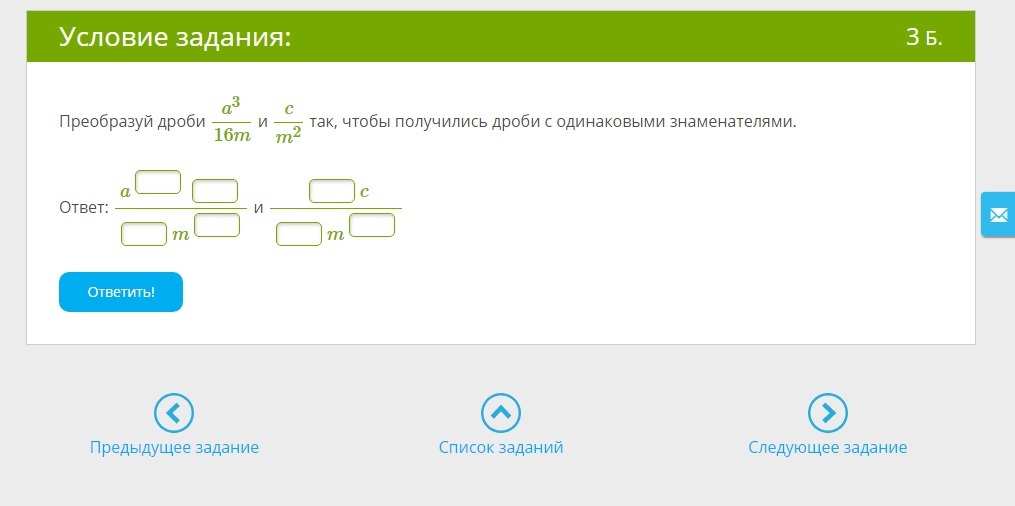 a^3 m^2 /16m^3 и 16mc /16m^3