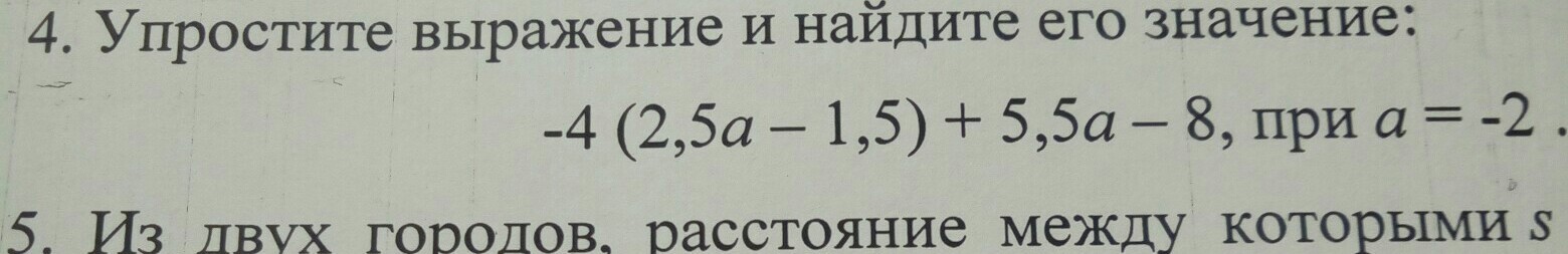 -10a+6+5,5a-8= -4,5a-2. подставляем значение: (-4,5)*(-2)-2=9-2=7. Ответ: 7.