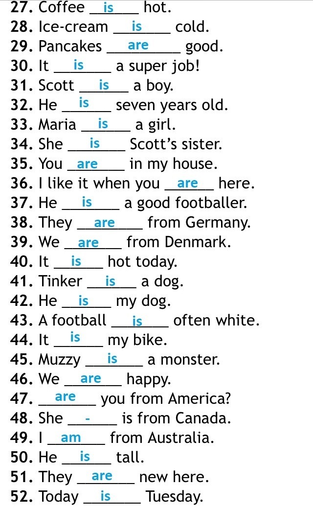 1 is, 2 is 3 are 4 is 5 is 6 is 7 is 8 is 9 is 10 is 11 is 12 is 13 is 14 are 15 is 16 are 17 is 18 is 19 are 20 are 21 am 22 is 23 is 24 is 25 are 26 are 27 is 28 is 29 are 30 is 31 is 32 is 33 is 34 is 35 are 36 are 37 is 38 are 39 are 40 is 41 is 42 is 43 is 44 is 45 is 46 are 47 are 48 is 49 am 50 is 51 are 52 is 53 is 54 is 55 are 56 are 57 am 58 are 59 are 60 is