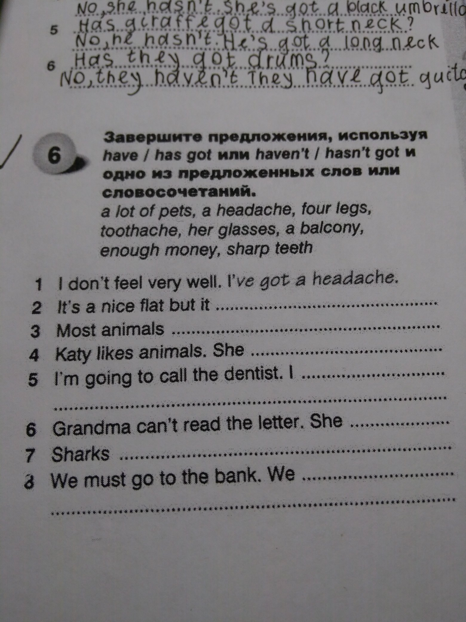 6. She hasn't got her glasses.