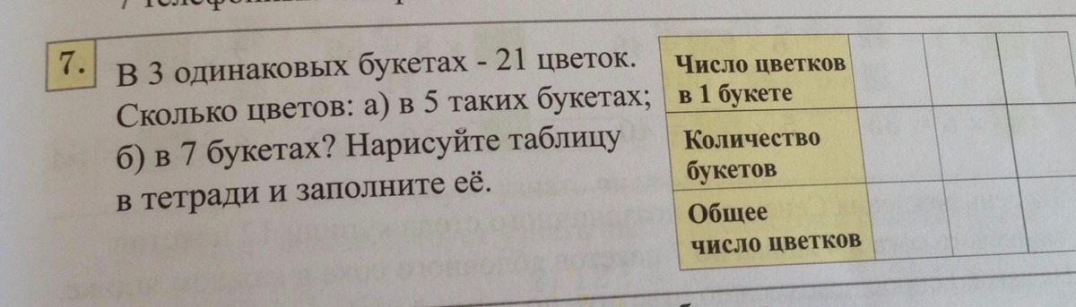 Общие число цветов : первая клетка 21 , вторая клетка 35 , 3 клетка 49