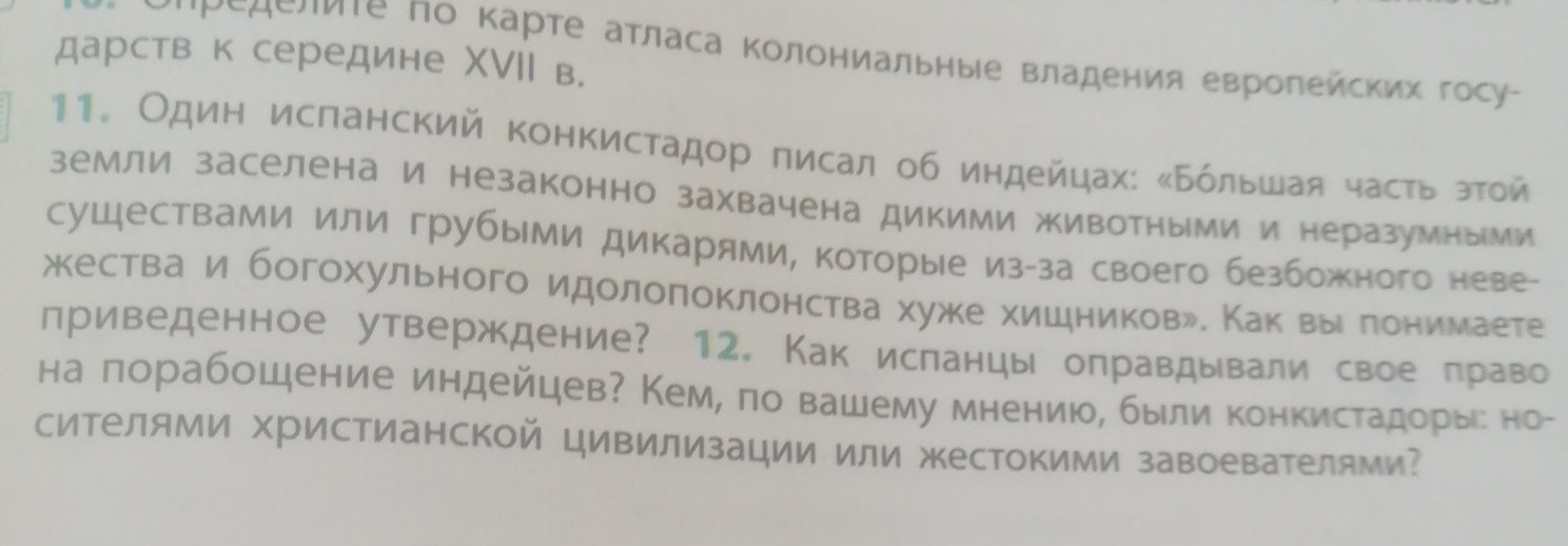 12.1 - Так как основной целью конкистадоров было захват новых земель и добыча золота, то они являлись жестокими завоевателями, которые прикрывались тем, что несут веру во Христа.