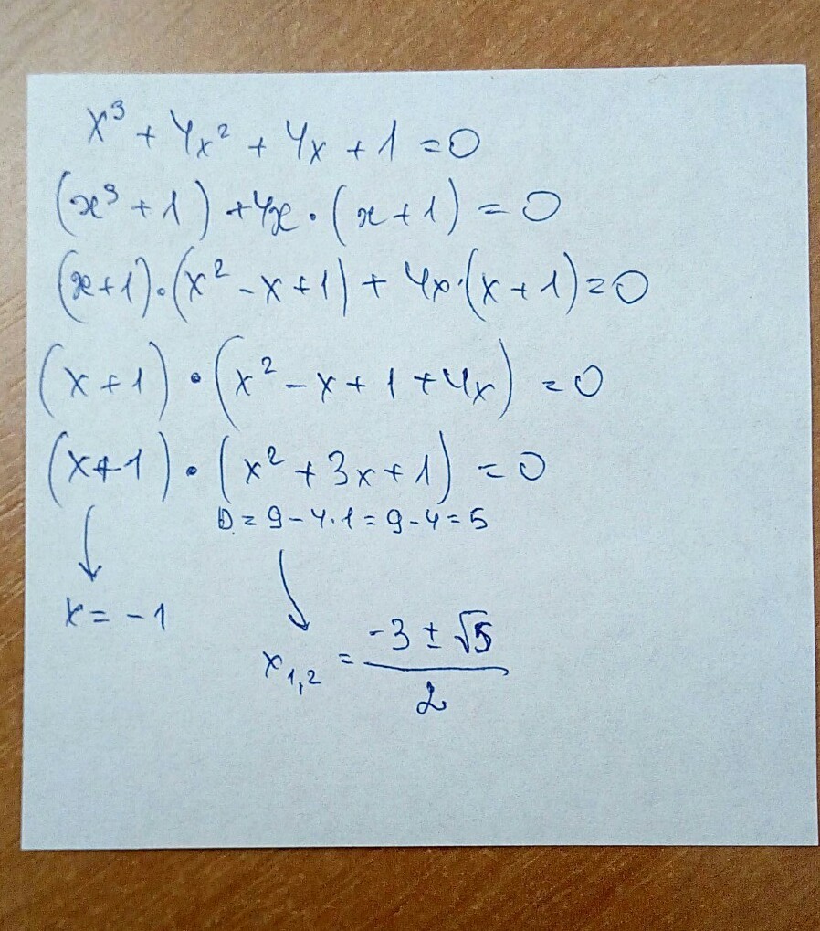 1) объединяешь х^3 и 1 и отдельно 4х^2+4х(потом выносишь 4х за скобки)