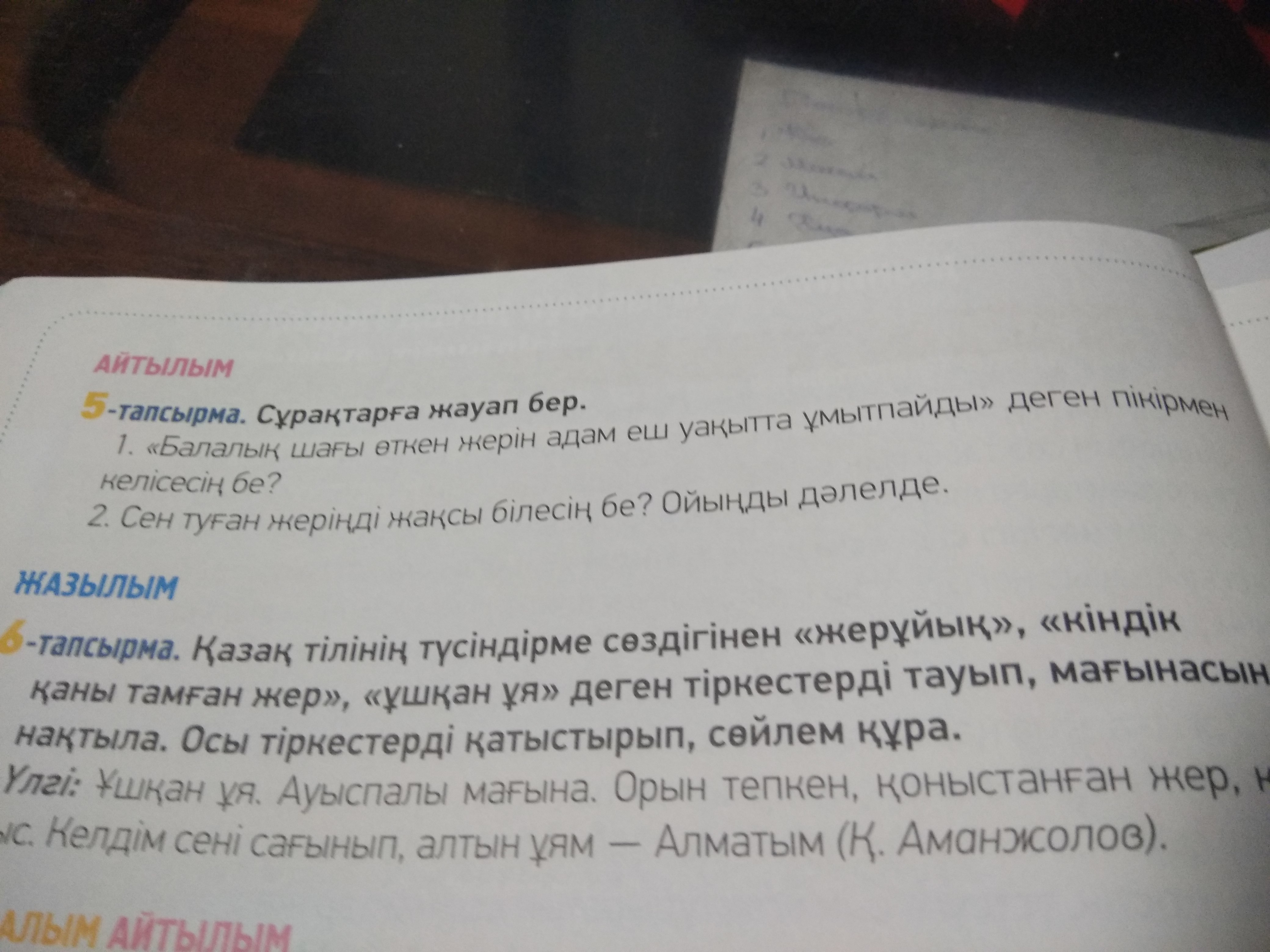 1. Бұл пікірмен толықтай келісемін. Адам баласы қай жерде өсіп, жетілсе ол жерді ешқашан ұмытпайды.Өйткені ол жерде ол адамның балалық шағы өтті. Ол жерде көптеген қызықты оқиғалар мен қайғылы оқиғалар да болды. Тіпті ол жер кішкентай бір ауыл болсын, үлкен қала болсын, кішкентайынан сол жерде туып өскендіктен ол жердің əрбір орны ыстық болып сезіледі!