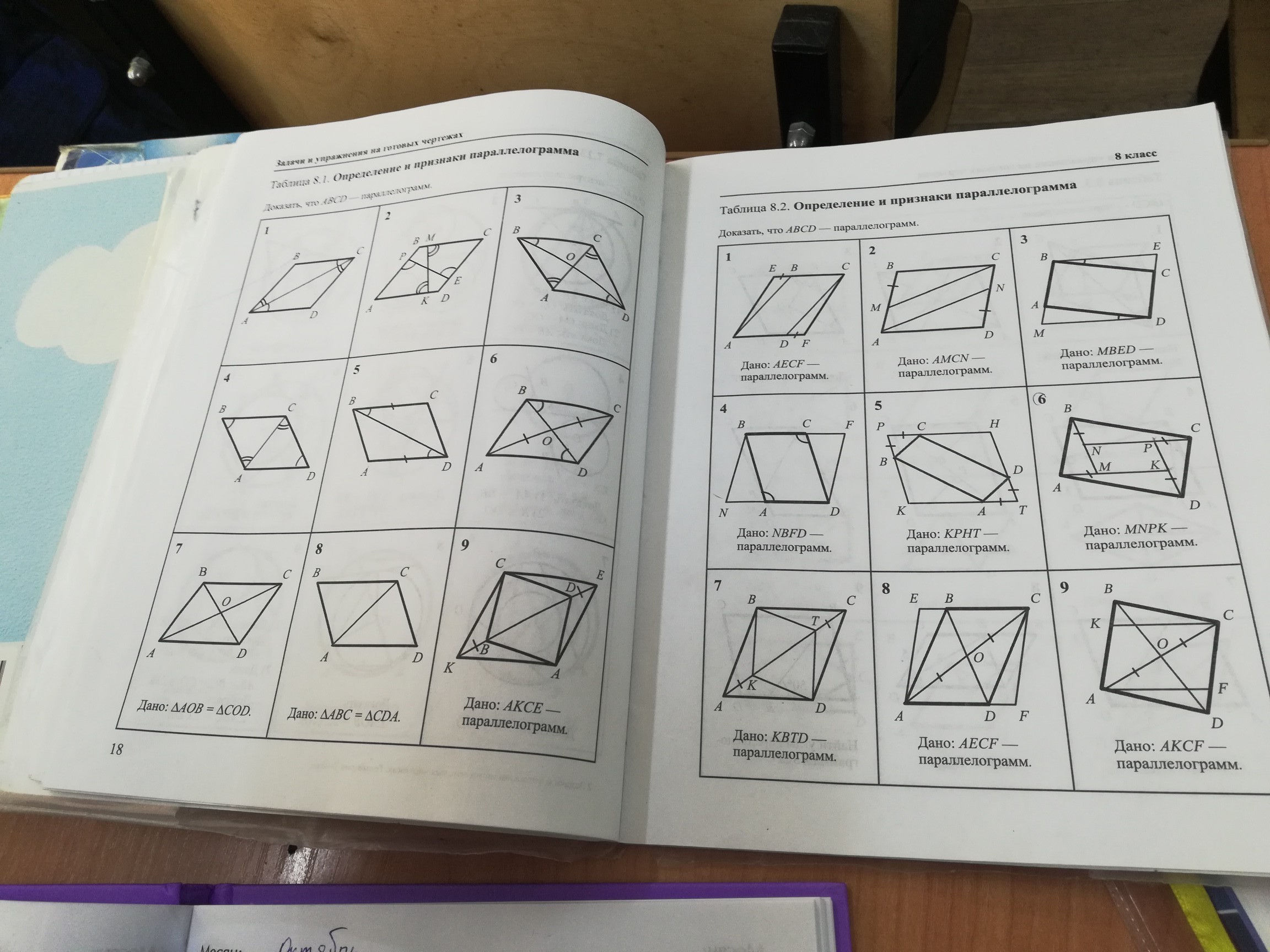 4) В треугольниках ABC и CDA два угла равны, следовательно все углы равны. Треугольники равны по стороне (AC - общая) и прилежащим к ней углам, их соответствующие стороны равны (AB=CD, BC=DA). Четырехугольник ABCD является параллелограммом т.к. его противоположные стороны равны.
