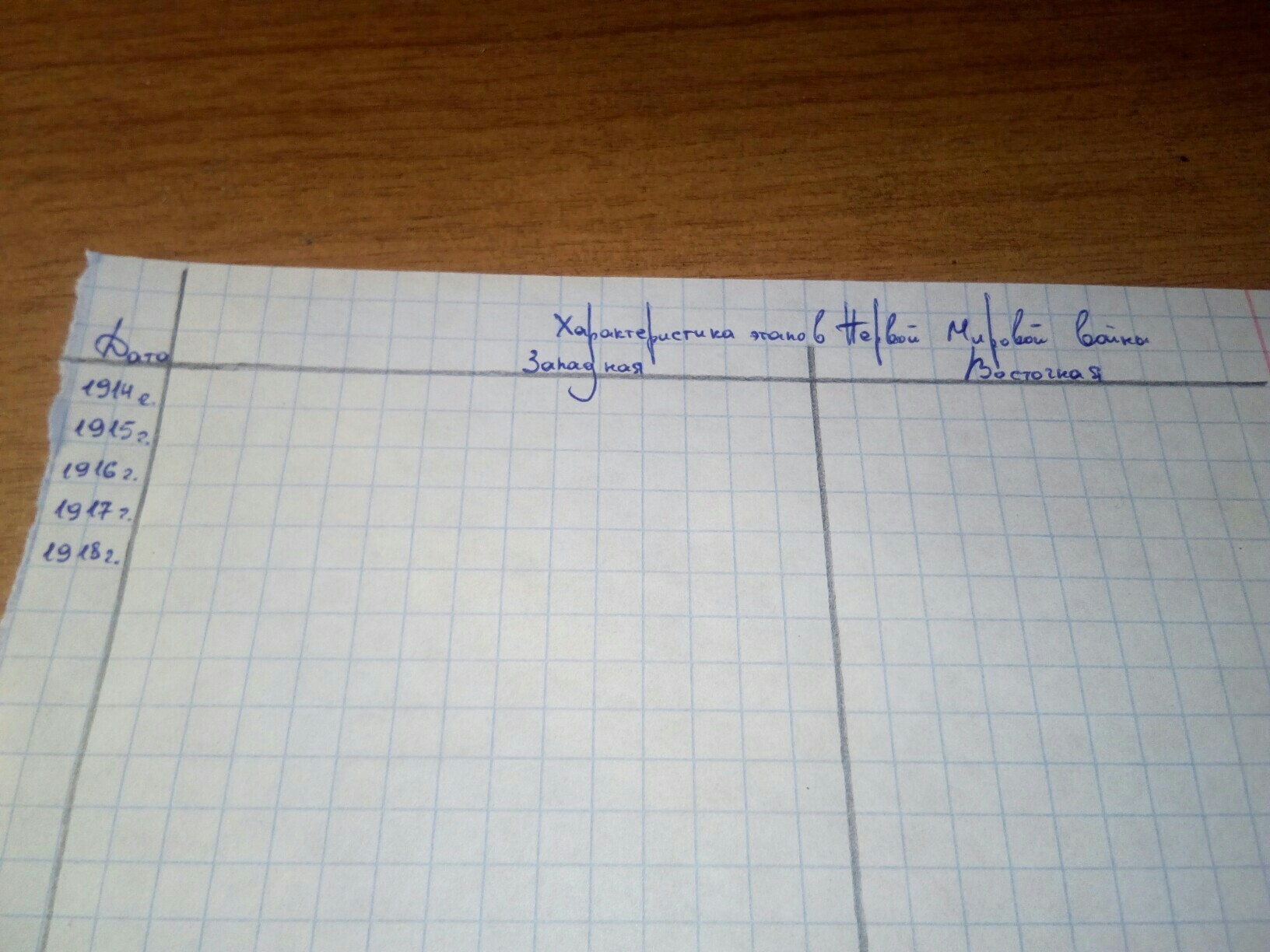 характеристика этапов Первой Мировой войны. восточная и западная часть (нужно указать места основных сражений,кто против кого воевал и как называлась эта война (если есть))