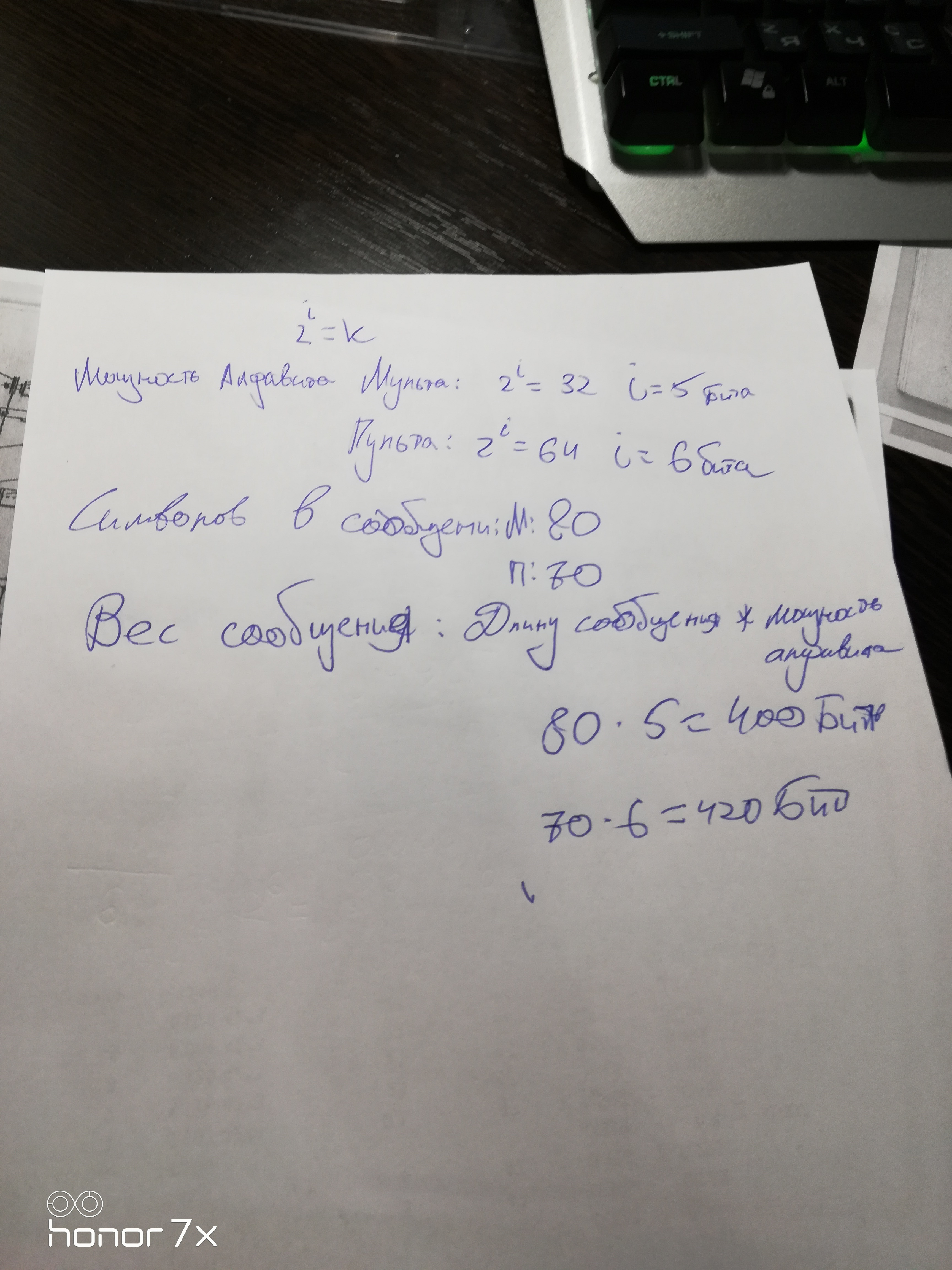 Племя мульта имеет 32 буквы в алфавите,а племя пульта имеет 64 буквы.Вожди племён перебросились сообщениями.Вождь племени мульта написал 80 букв,а вождь племени пульта 70.Вопрос:чье письмо "весит"(в плане битов/байтов и т.д.)больше т.е. чьё сообщение тяжелее