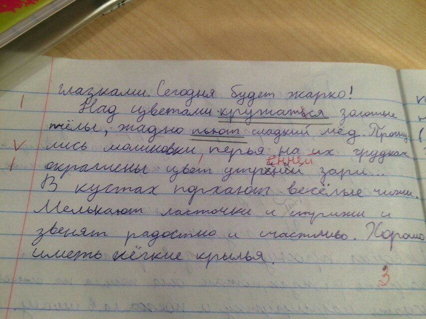 Кружатся - двумя, пчелы - одной, пьют - двумя. Прогнулись - двумя, малиновки(или что это за слово) - одной, перья - одной, окрашены - двумя. Порхают - двумя, чижи - одной. Мелькают - двумя, ласточки - одной, стрижи - одной, звенят - двумя. Иметь - двумя.