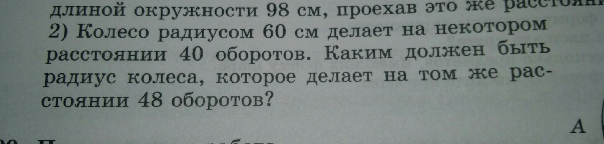 Другое колесо, делает 48 оборотов на том же расстоянии, значит, делая 1 оборот, оно преодолевает расстояние L2 = 4800π : 48 = 100π см.