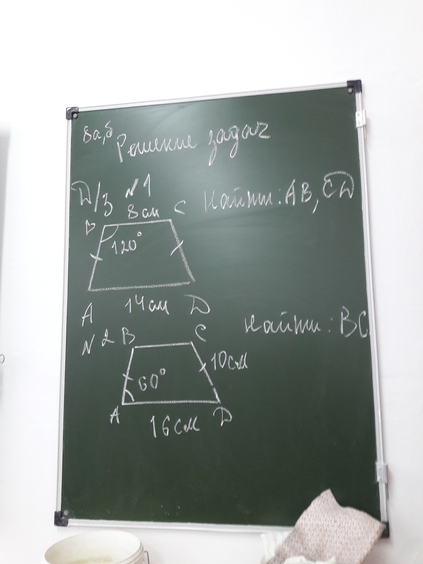 1) рисуешь высоту BH на отрезок AD, тогда выйдет уголBAD=60°,уголHBA=30°, отсюда следует что AB=2*AH=6, AH=(14-8)/2=3