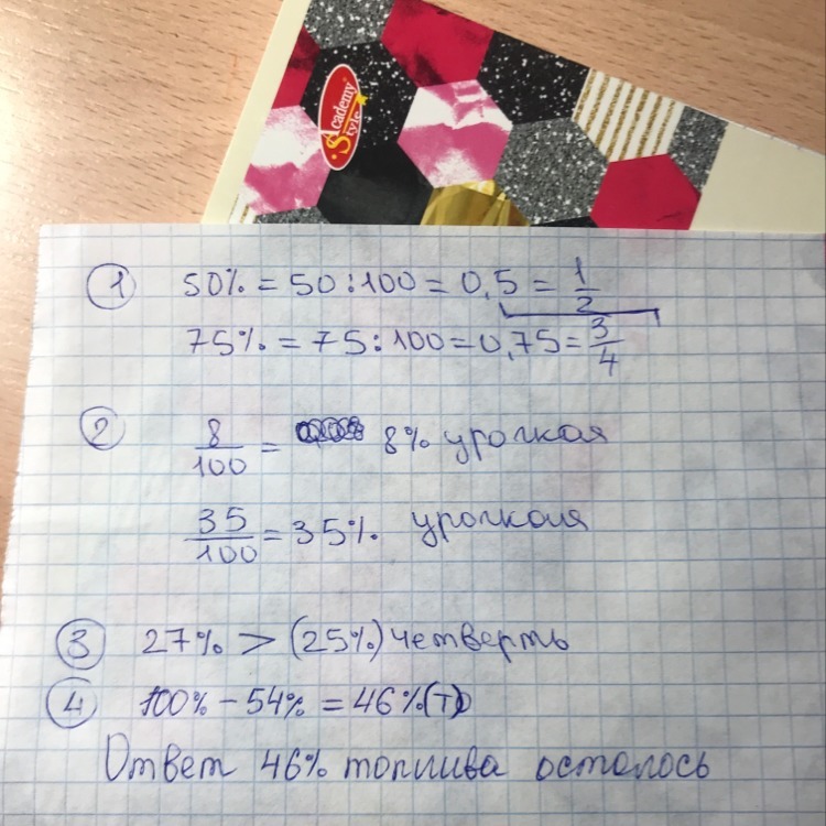 1) 50%= 0.5 или 1/2... 75%= 0.75 или 3/4