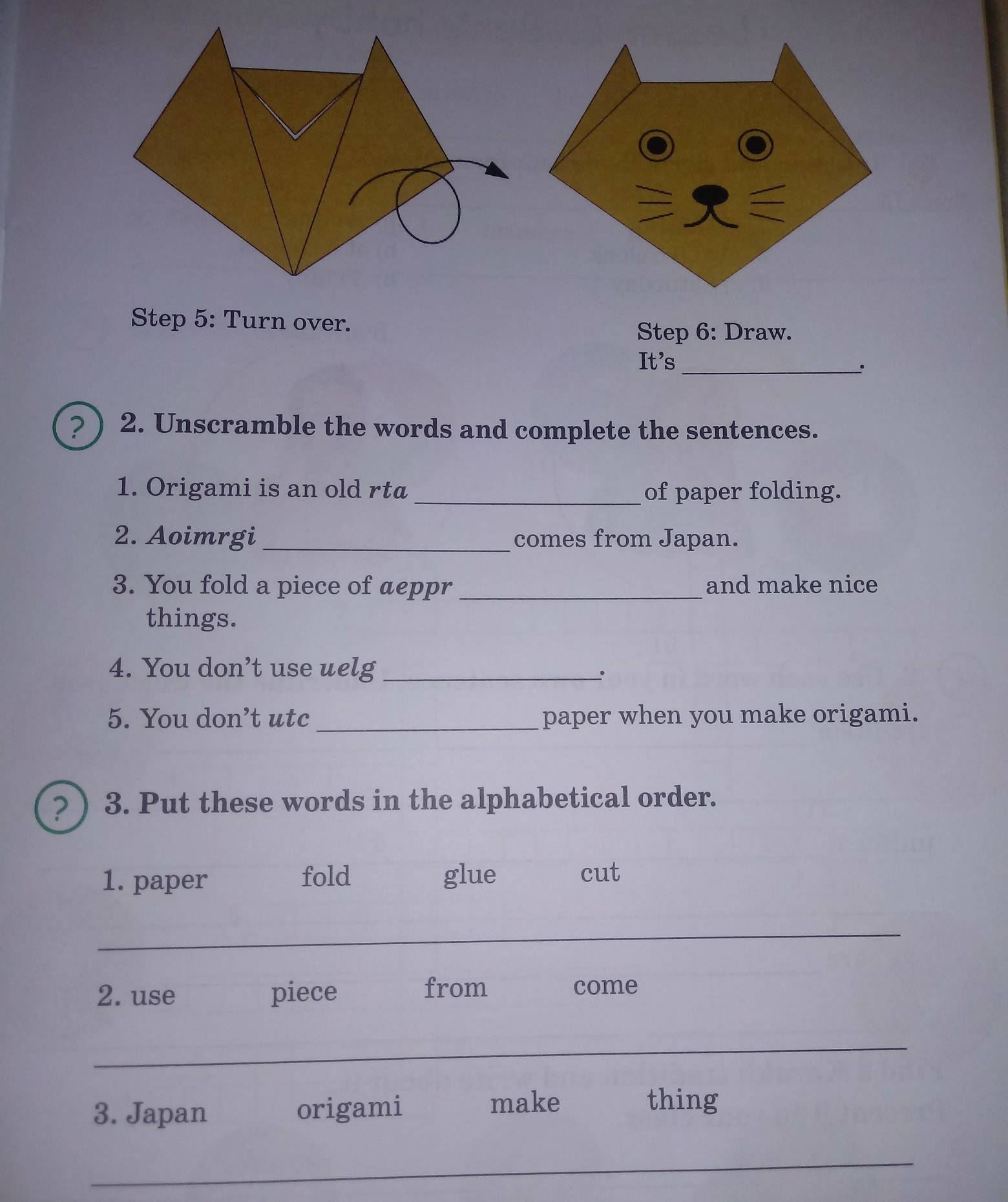 1 rat 2 Origami 3 paper 4 glue 5 cut