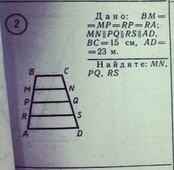 RS - средння линия трапеции APQD, RS=1/2(PQ+AD)= 21 cm