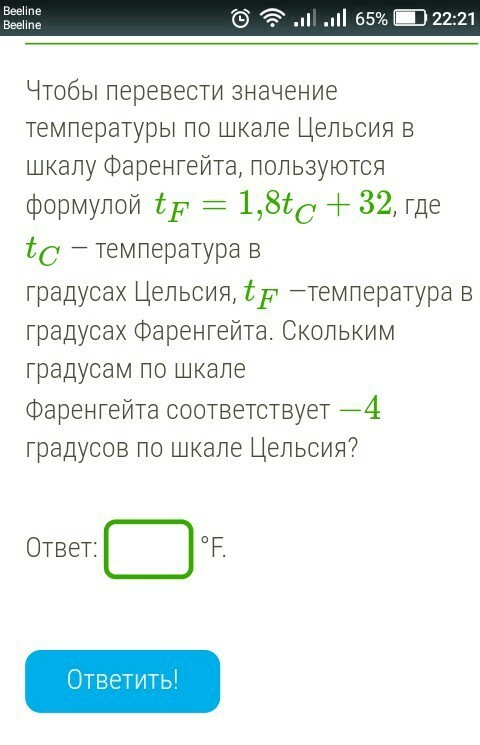 Ну смотри. тут же на изи. F=1,8×(-4)+32 = по идее 24,8