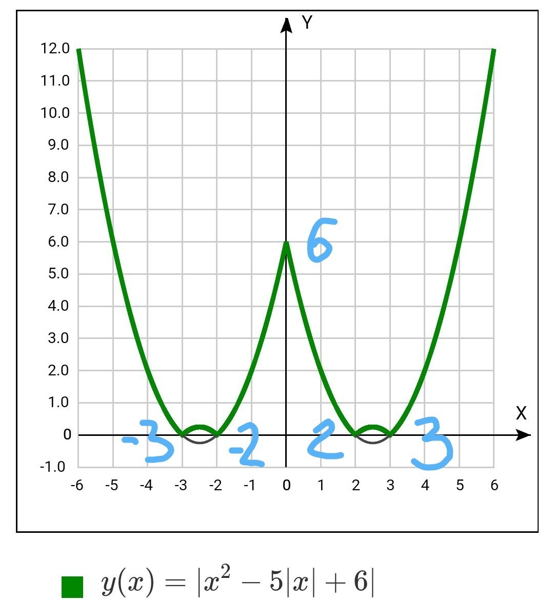 у(х)=|х²-5|х|+6|=| |х|²-5|х|+6 |=у=( |х| )