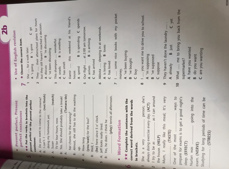 5) 1. haven't finished, 2. has been watching, 3. has tamara done 4. have you been waiting 5. has been playing