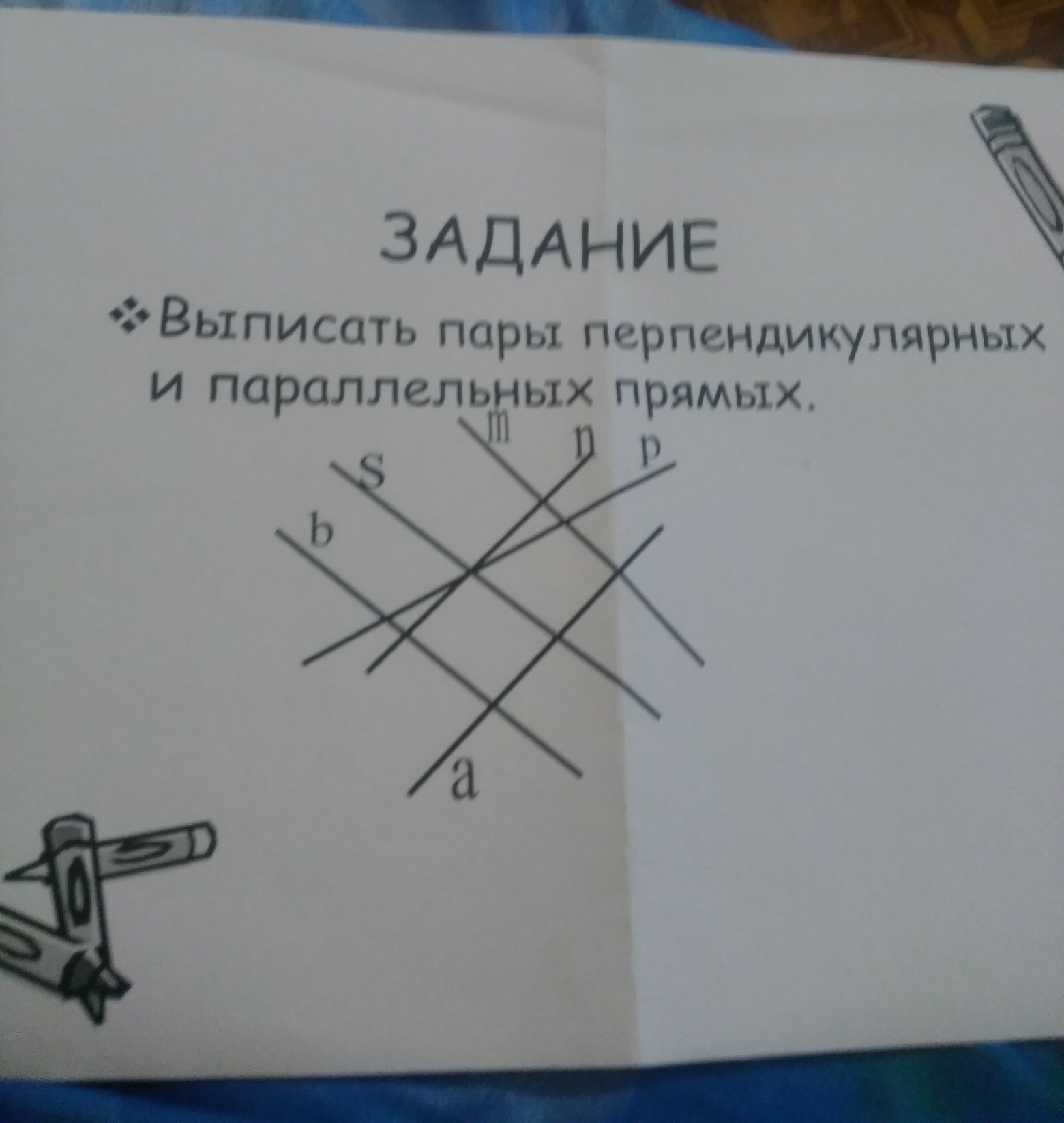 перпендикулярные: m, S и b перпендикулярны 2-м прямым: n и a