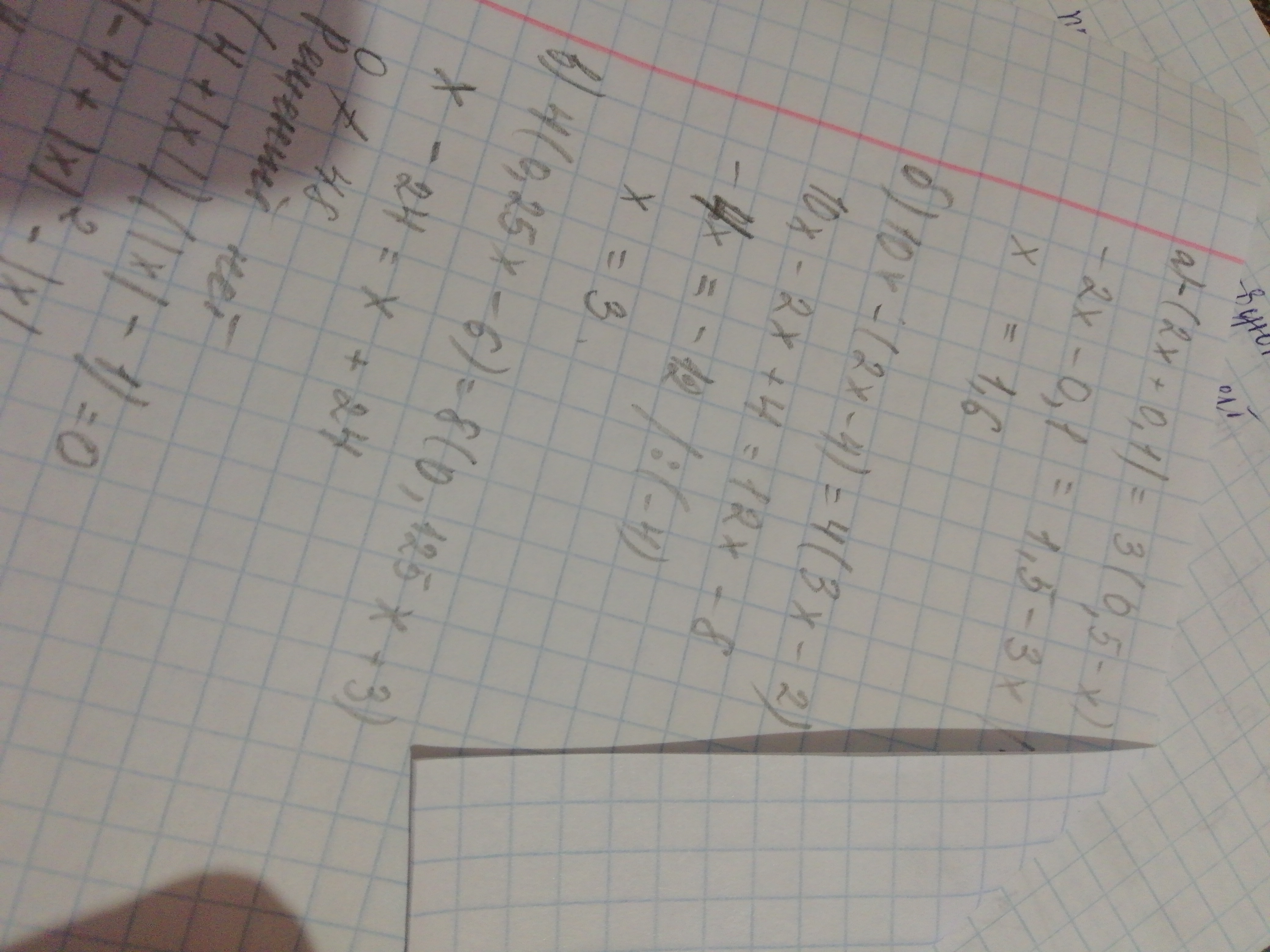 Помогите решить уравнения а)-(2х+0,1)=3(0,5-х); б) 10х-(2х-4)=4(3х-2);