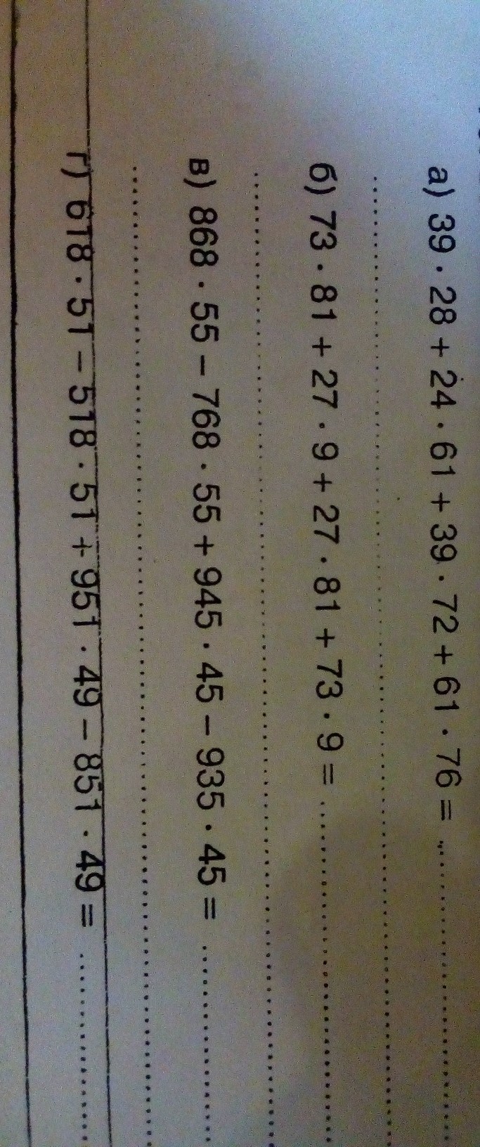 а). 39*28 + 24*61 + 39*72 + 61*76 = 39*(28+72) + 61*(24+76) =