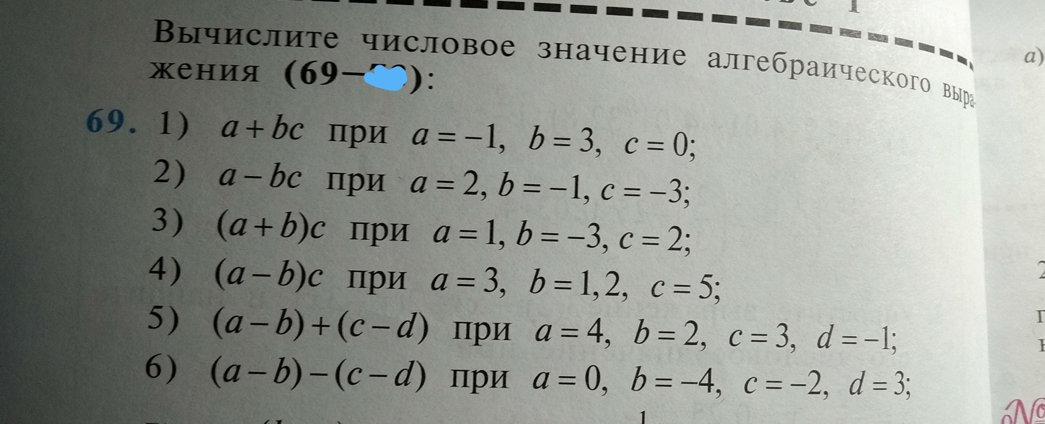2) a - bc = 2 - (-1)(-3) = 2 - 3 = -1