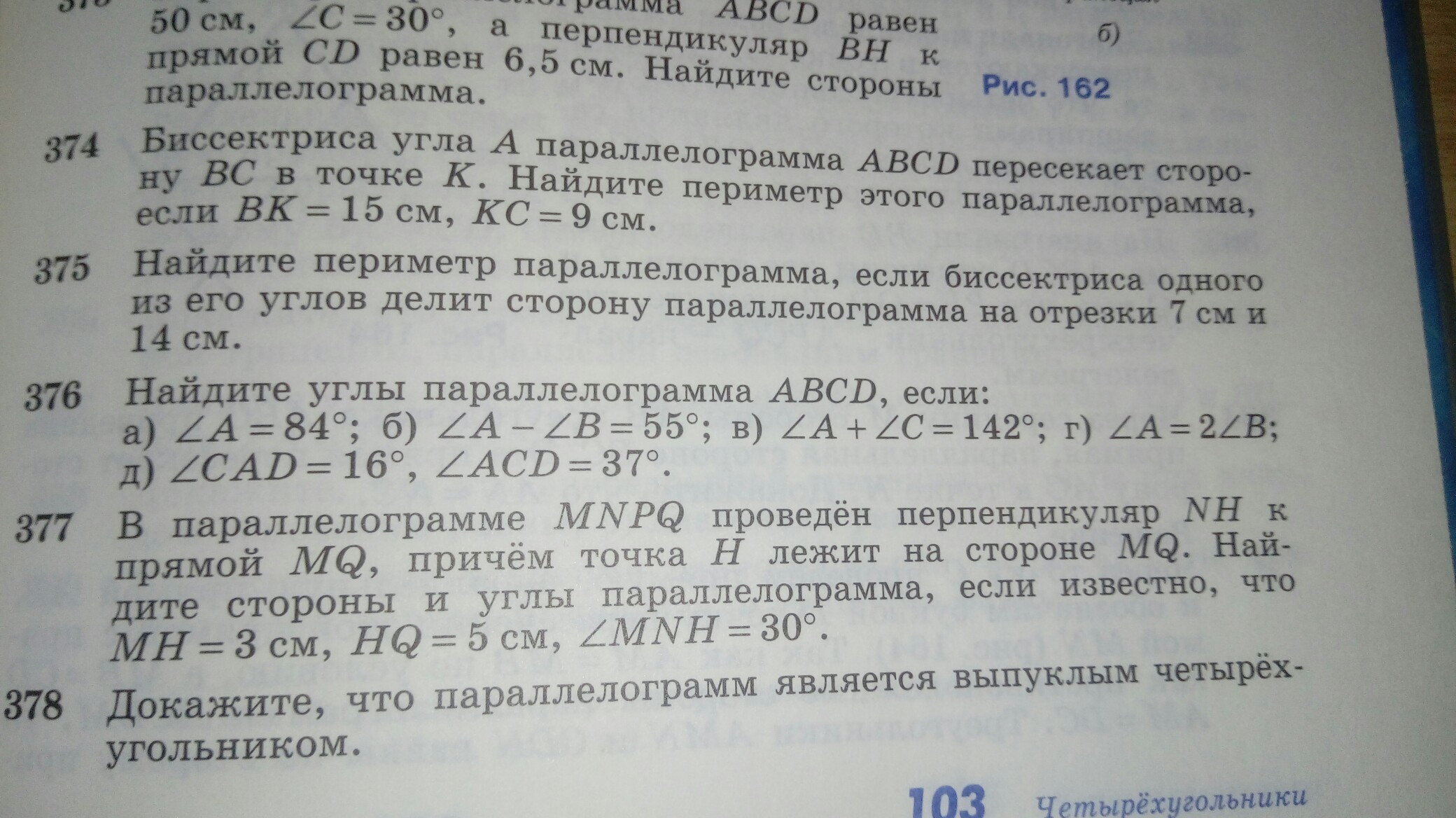 В параллелограмме противоположные стороны равны и противоположные углы тоже равны.