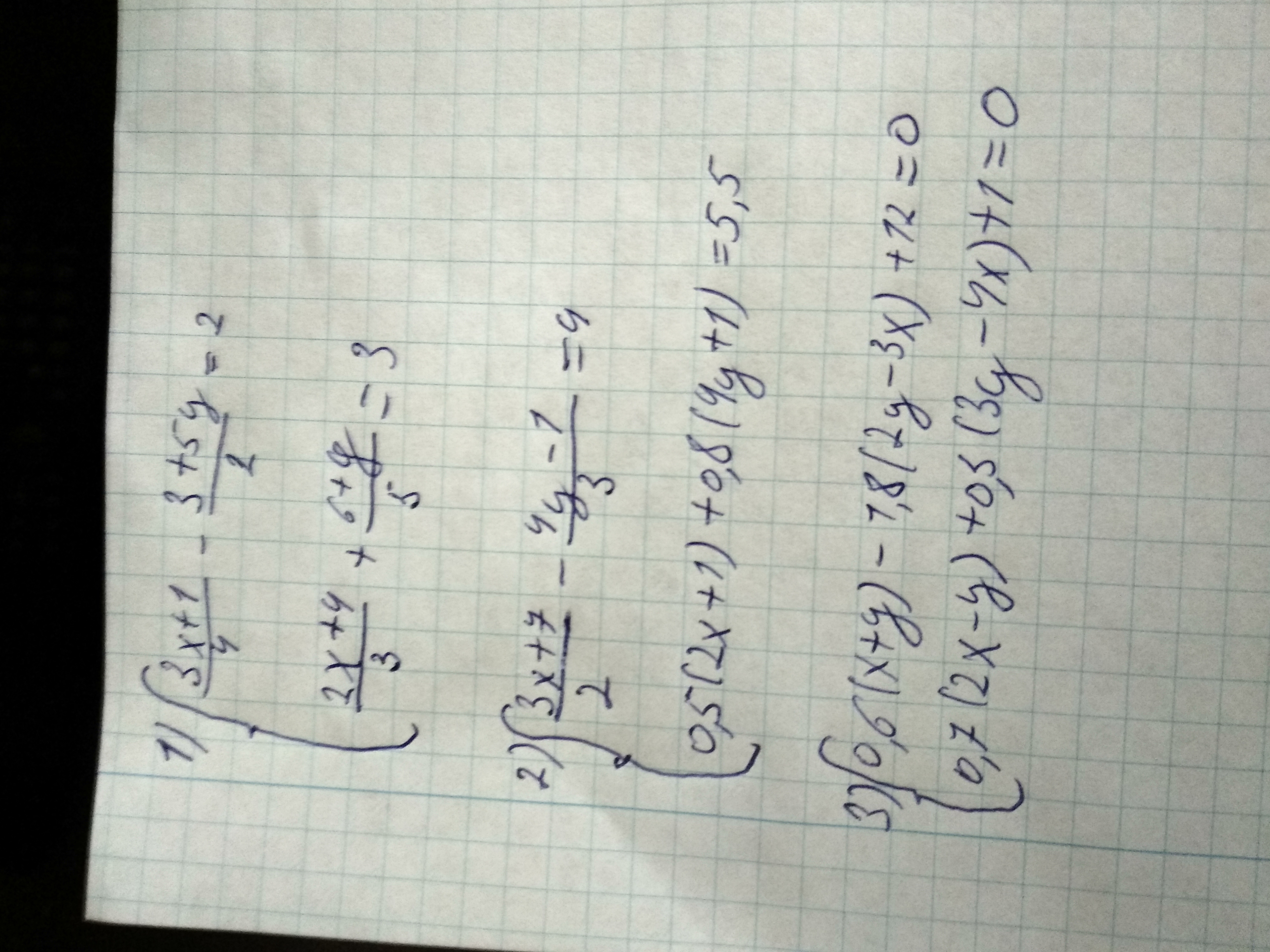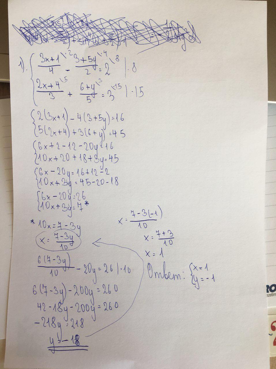 1). x = 1; y = -1 ; 2). x = 1; y = 1; 3). x = -3; y = -2