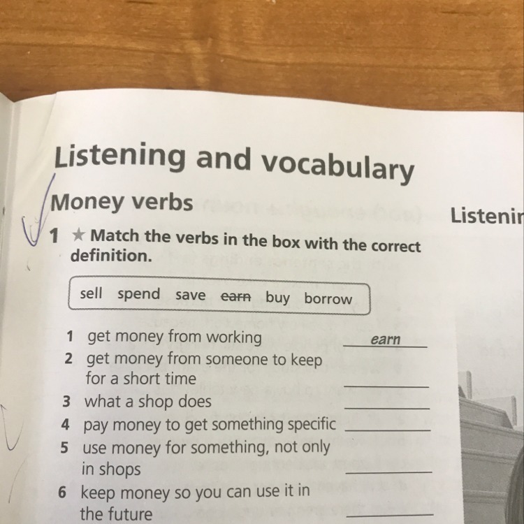 2. borrow, 3. sell, 4. buy, 5. spend, 6. save
