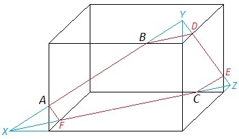 Определяем точки, лежащие на одной грани, и через эти точки проводим прямую, отмечая точки пересечения с прямыми ребер.