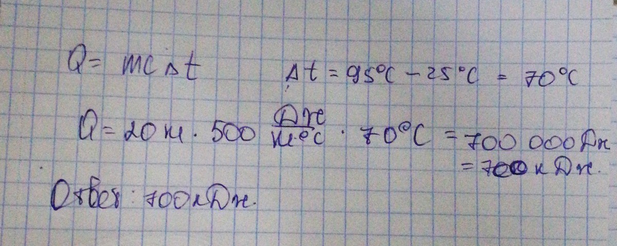 Стальное сверло с массой 20кг при работе нагрелось от 25 до 95 C.На сколько изменилась внутренняя энергия свёрла?