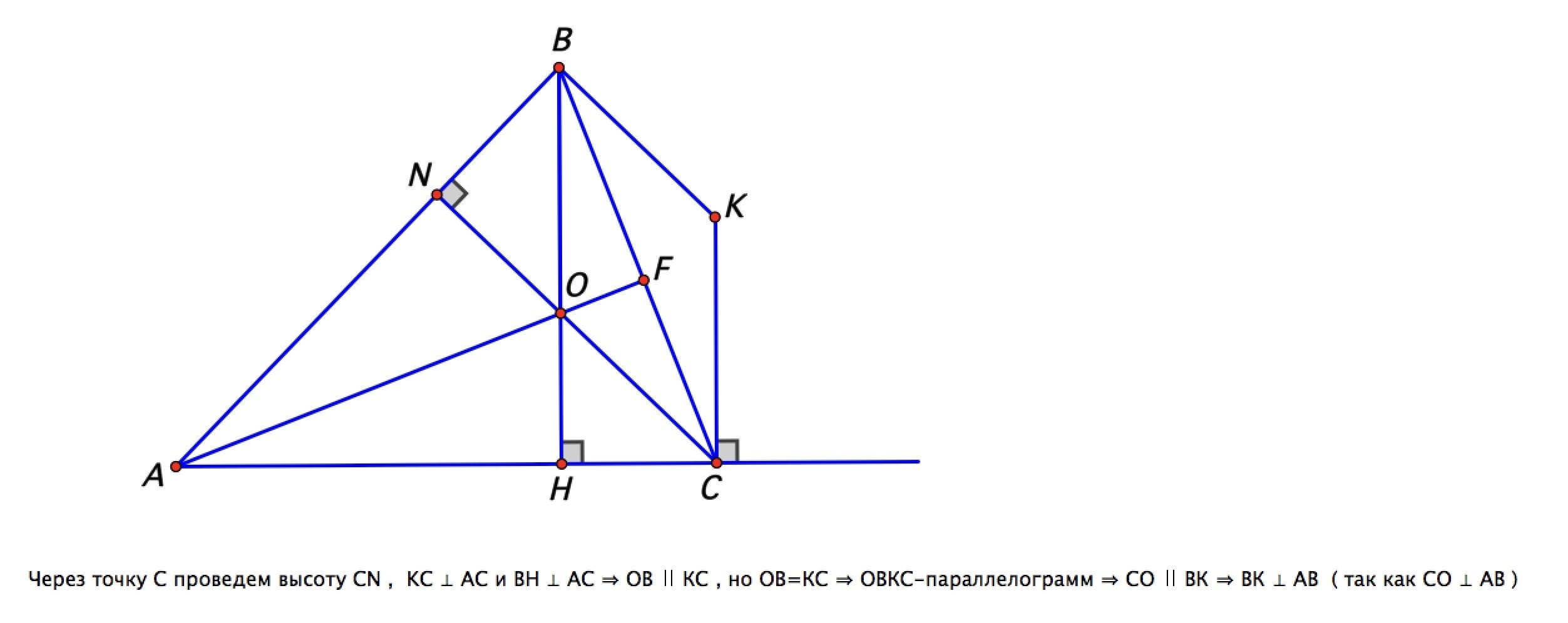 В треугольнике ABC высоты BH и AF пересекаются в точке О. Из точки С к прямой АС в одну полуплоскость с точкой В восстановлен перпендикуляр СК, равный отрезку ВО. Докажите, что ВК перпендикулярно АВ. Даю 39 баллов