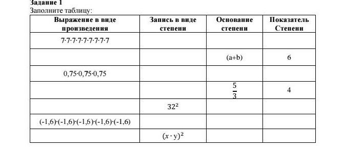 Выражение в виде произведения¶Запись в виде степени¶Основание степени ¶Показатель степени