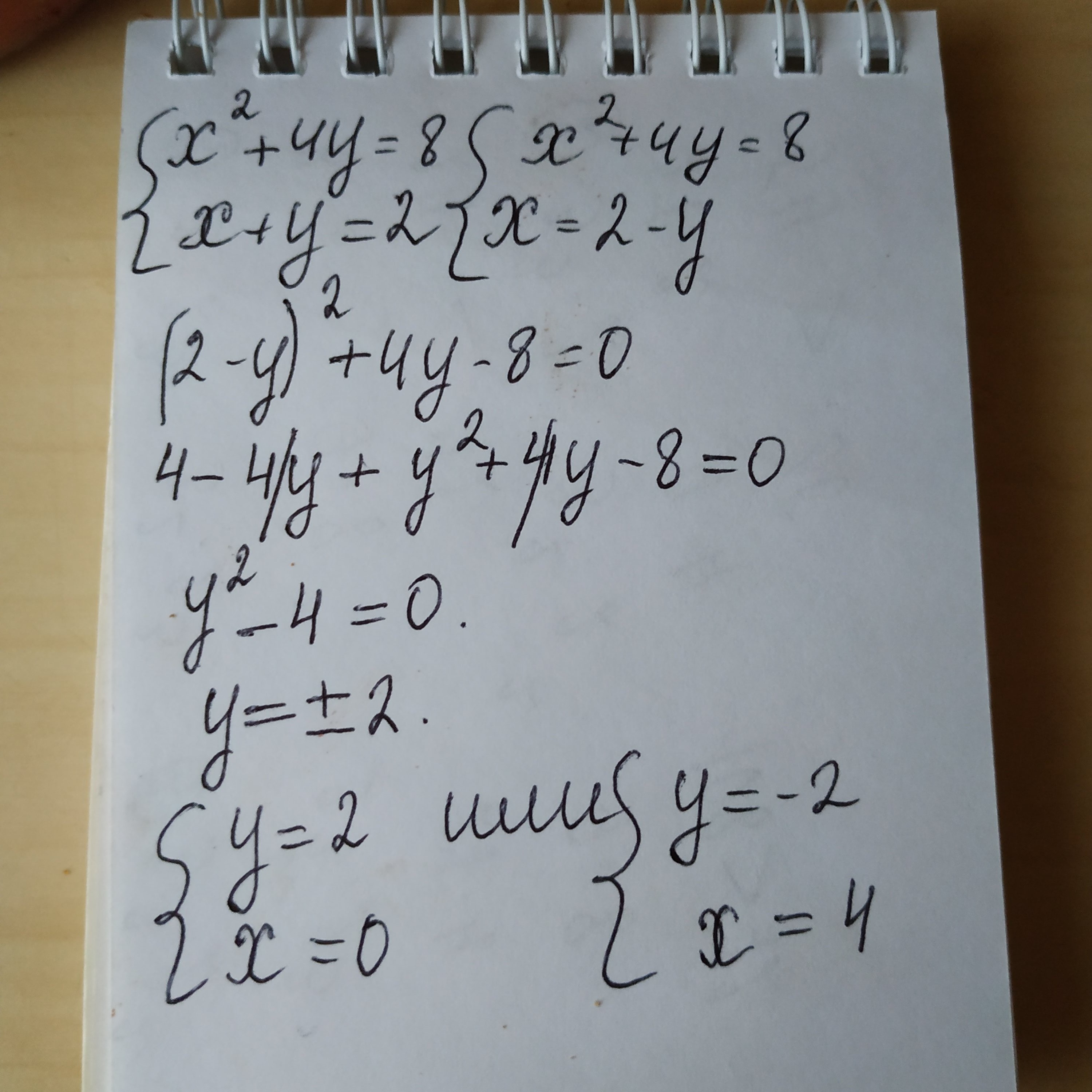 Решай , получится 2 корня(т.е. 2 у) и подставляй в х=2-у (у1 и у2)