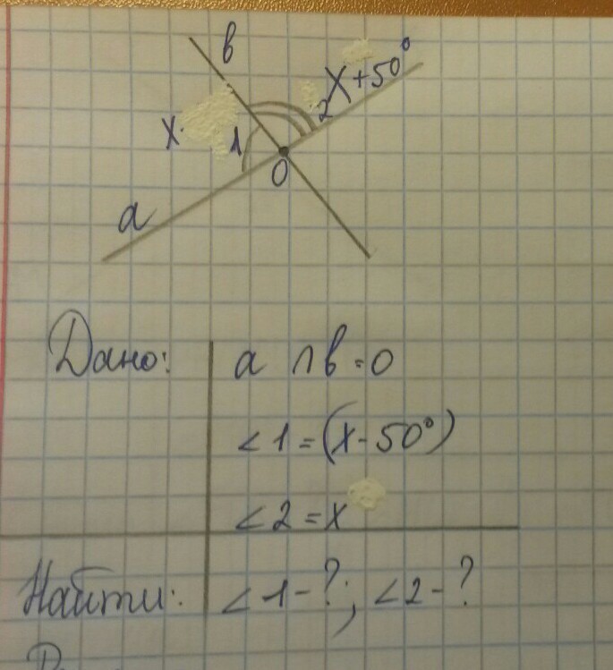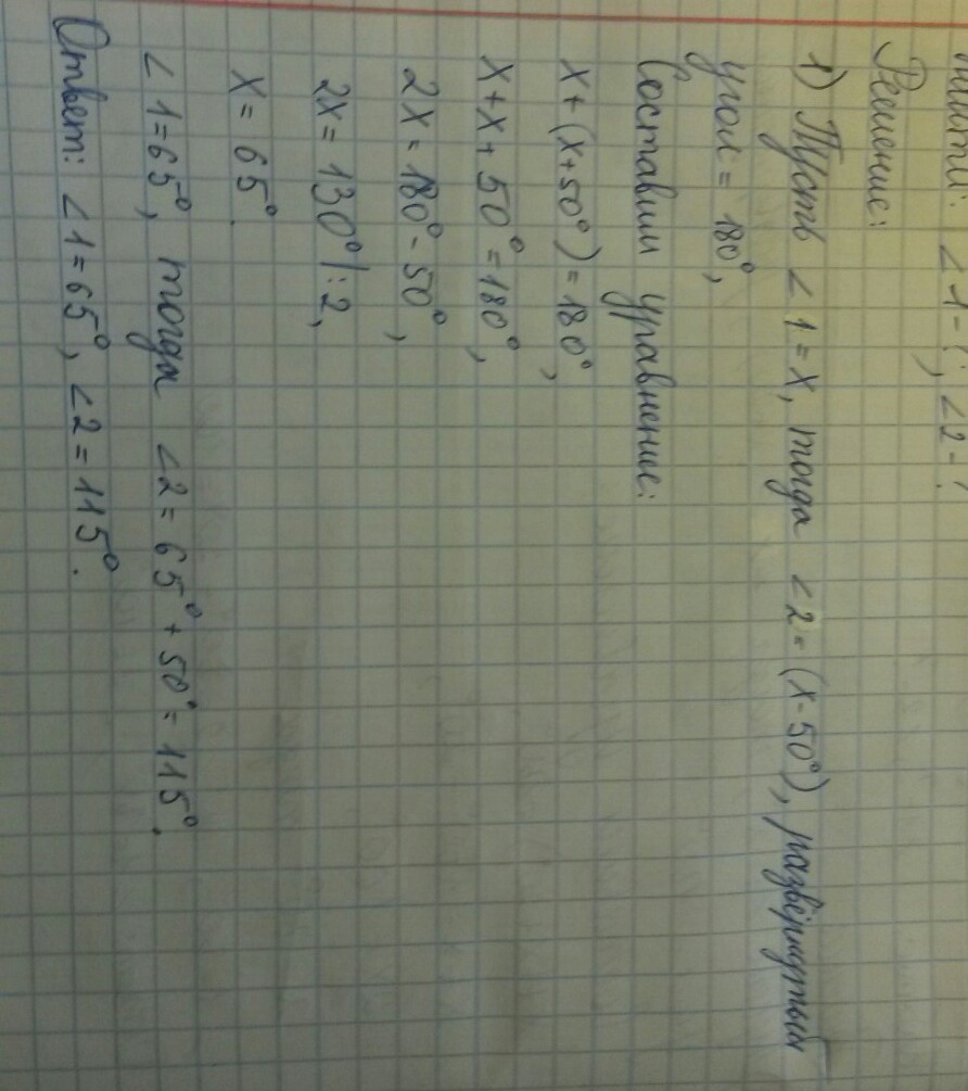 один из углов которые получаются при пересечении двух прямых на 50 градусов меньше другого Найдите эти углы