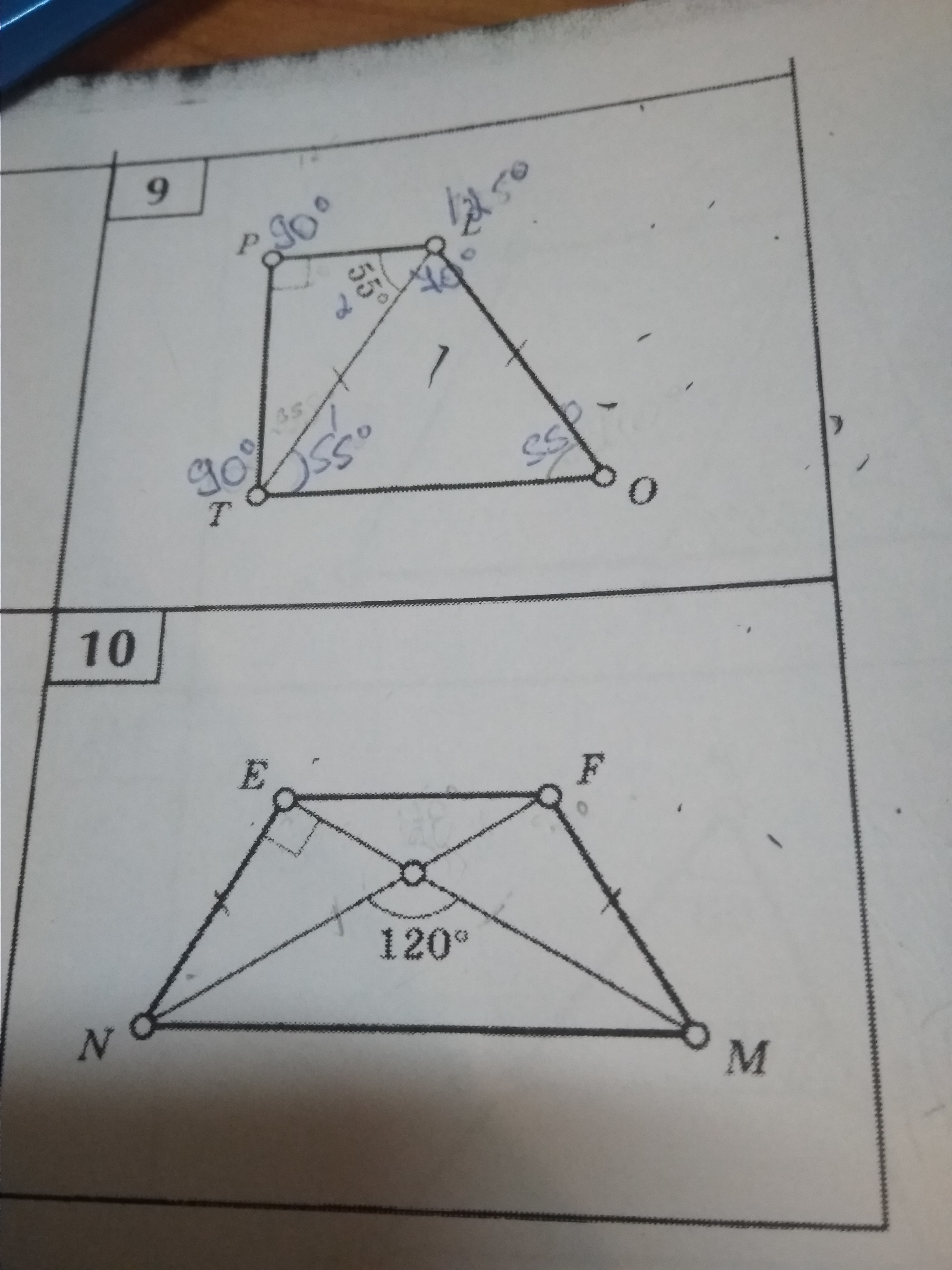 4)уголENM = уголFMN = (360°-120°*2):2 =120°: 2 = 60°