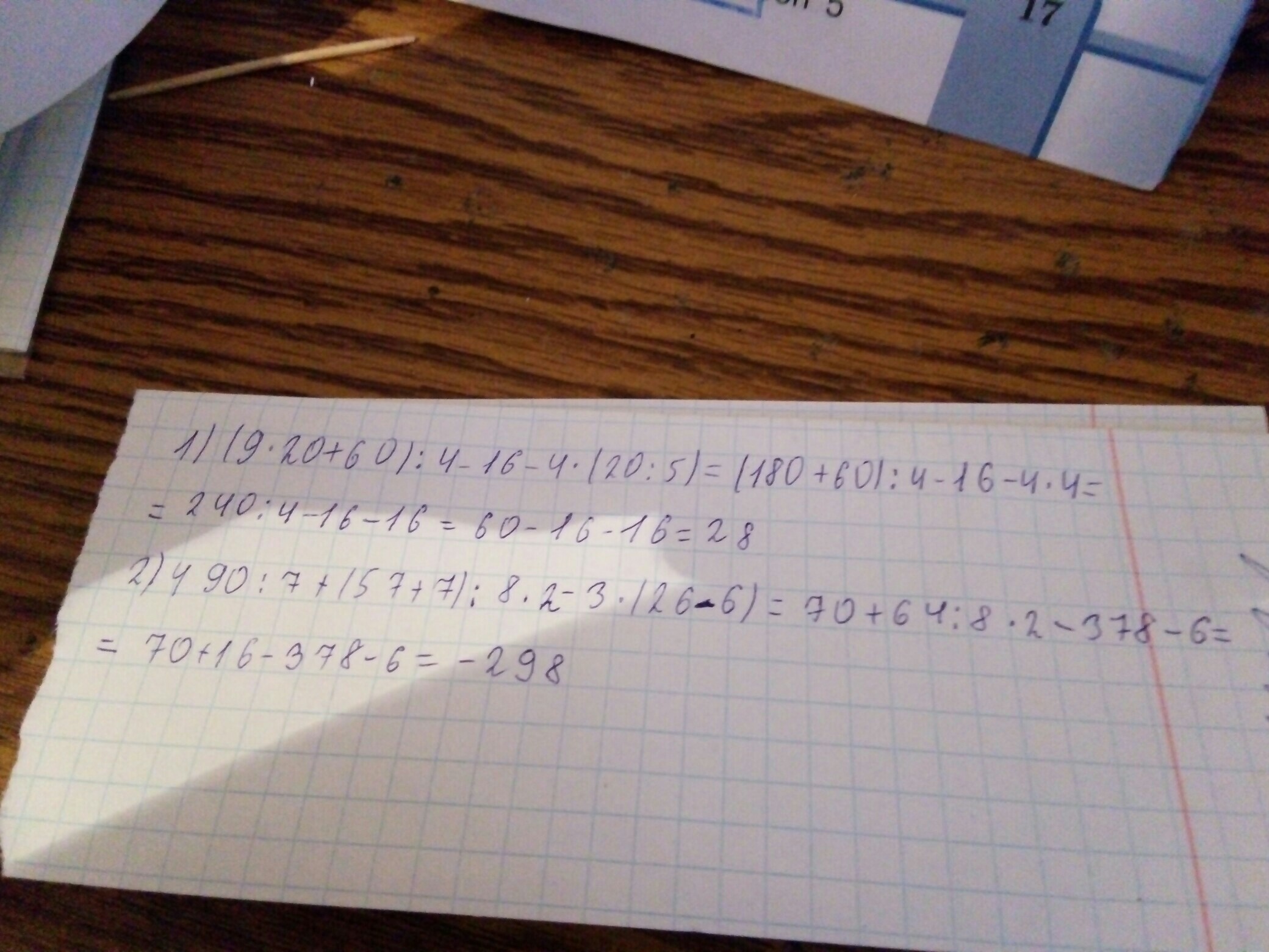 2)490:7+(57+7):8*2-3*(26-6)=70+64:8*2-3*20=70+8*2-60=70+16-60=26