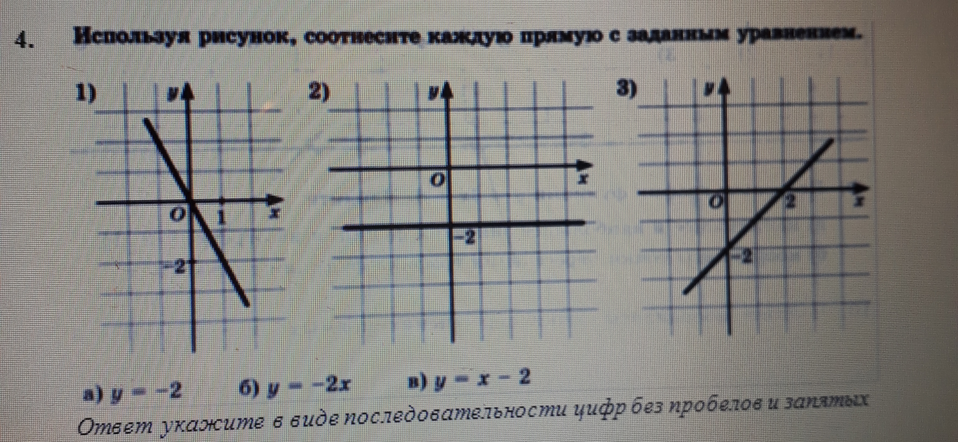 Помогите пожалуйста!!! Даю 15 баллов! Используя рисунок, соотнесите каждую прямую с заданным уравнением