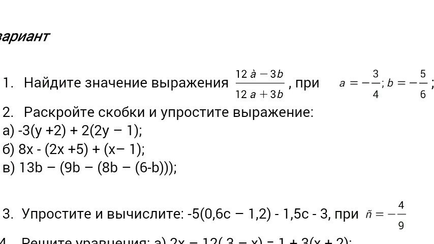 1. (4a-b)/(4a+b)=(-3+5/6)/(3-5/6)=-1