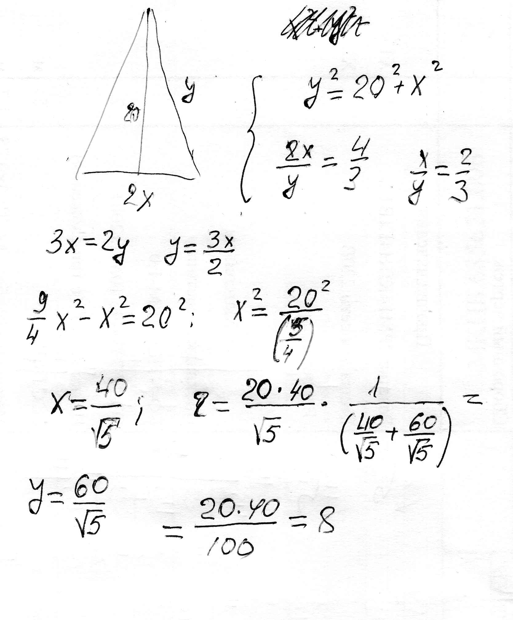 в равнобедренном треугольнике высота, опущенная на основание, равна 20,а основание относится к боковой 4:3. Найдите радиус вписанной окружности.