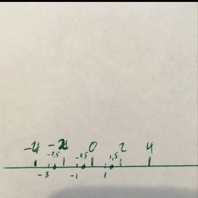 единичный отрезок равен 2 см, следовательно 1 клетка тетради по условию будет равняться 2 см, -2,5 см, будет равняться -1 1/4 клетки, то есть левее нуля, аналогично другие точки