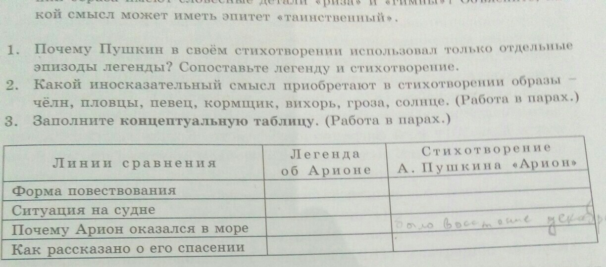 Александр Сергеевич Пушкин получил классическое образование в Царскосельском Лицее, знал прекрасно древнегреческий язык, мифы и легенды Древней Греции, поэтому, опираясь на легенду об Арионе, он создал своё стихотворение под названием «Арион» , однако поэт не пересказывает легенду, а берет для произведения лишь некоторые образы. В чем же сходство двух произведений?