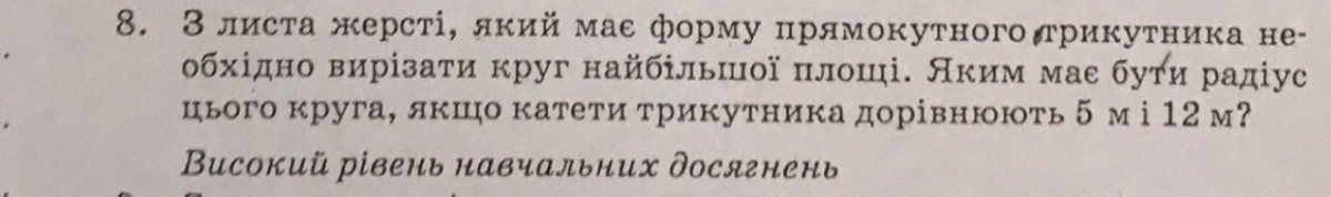 Максимальным может быть круг, окружность которого касается всех трёх сторон треугольника - это вписанная окружность радиуса r.